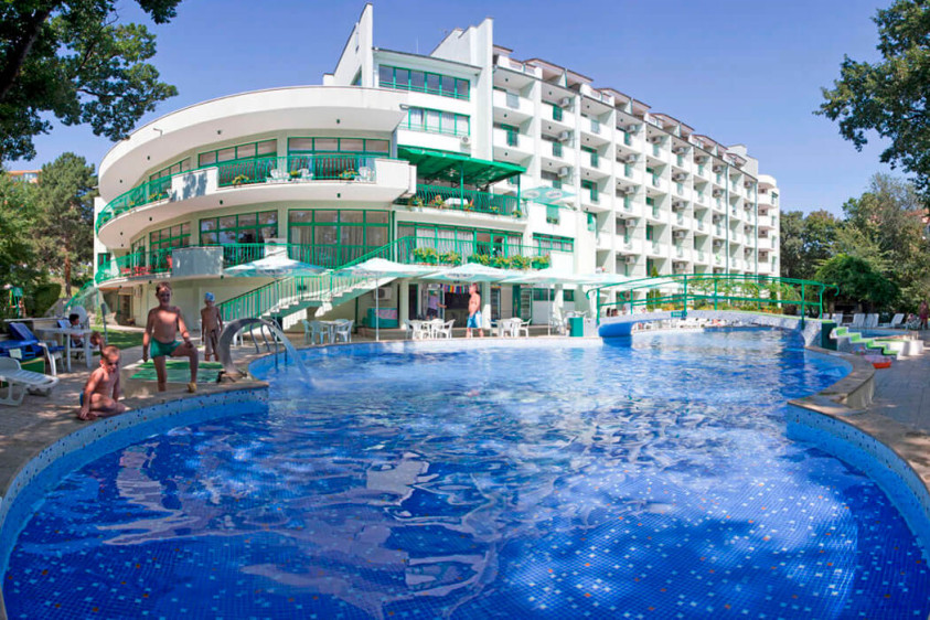 ZAKWATEROWANIE: hotel ZDRAVETS ***+ dogodnie usytuowany, z dobrą obsługą. Położony w centrum Złotych Piasków, w dobrze utrzymanym parku. Hotel oddalony jest ok. 250 m od plaży. Posiada odkryty BASEN kąpielowy z wydzieloną częścią dla dzieci, bar przy basenie, bezpłatne parasole i leżaki przy basenie (ilość ograniczona), restaurację, lobby bar, recepcję z możliwością wynajęcia sejfu, punkt wymiany waluty, bilard, gry internetowe, tenis stołowy, fitness, saunę.